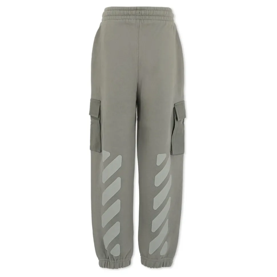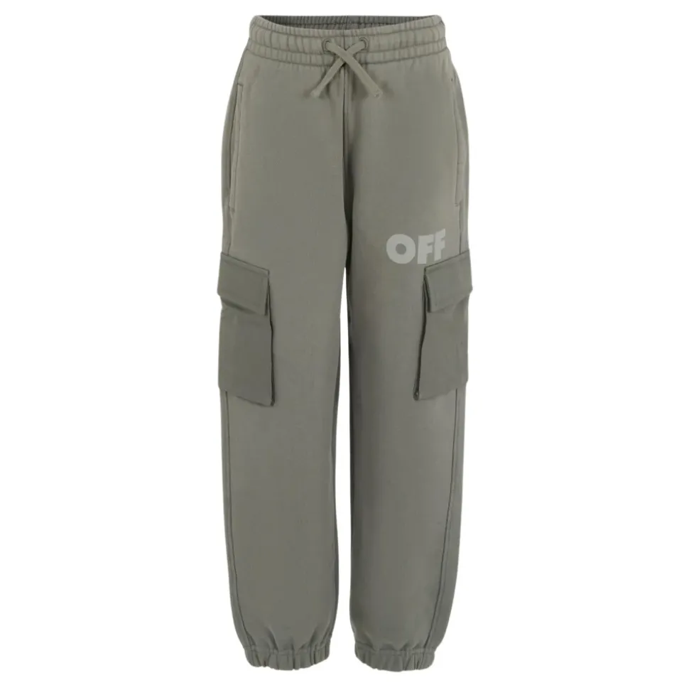 Upgrade de stijl van je kind met deze Off White grijze katoenen fleece sweatpants. Voorzien van een elastische trekkoord taille, zijzakken, klepzakken en een iconisch pijlontwerp op de achterkant, zijn deze broeken zowel comfortabel als trendy. Gemaakt van 100% katoen. Machinewas op 30°C.