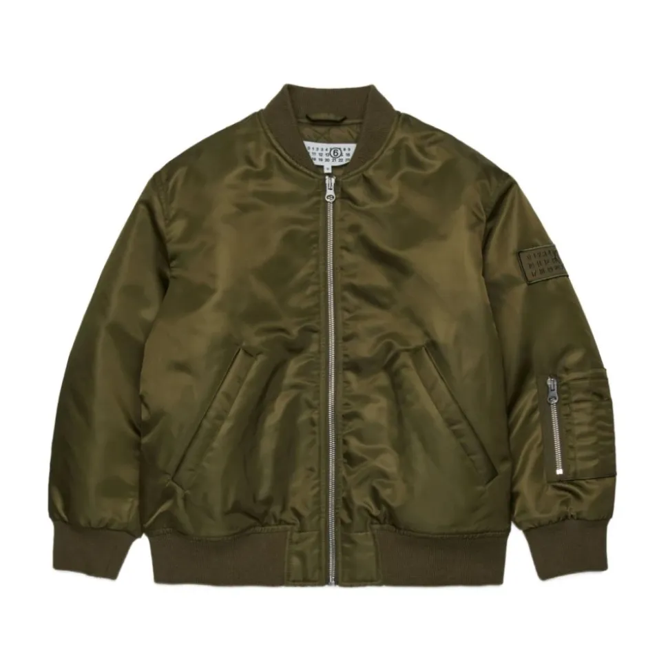 Upgrade de stijl van je kleintje met deze MM6 Maison Margiela Kids Bomber jack met een opvallende logo-applicatie. Deze olijfgroene jack heeft een ritssluiting aan de voorkant, twee voorzakken, een ritssluiting op de mouw en het iconische logo met cijfers.