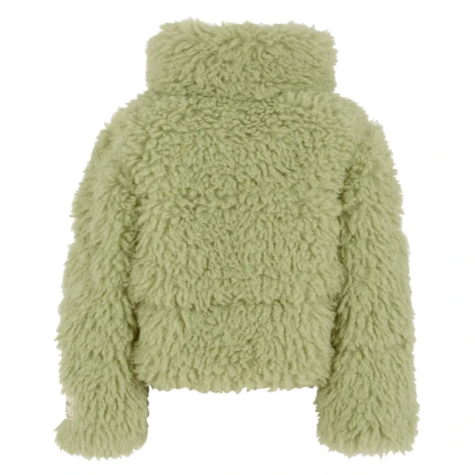 Blijf warm en stijlvol deze winter met de Molo groene faux shearling bontjas. Deze gezellige jas heeft lange mouwen, een hoge kraag, een ritssluiting aan de voorkant, zijzakken en elastische manchetten en zoom. Compleet met een logopatch op één mouw. Gemaakt van 100% polyester. Machinewas op 30°C.