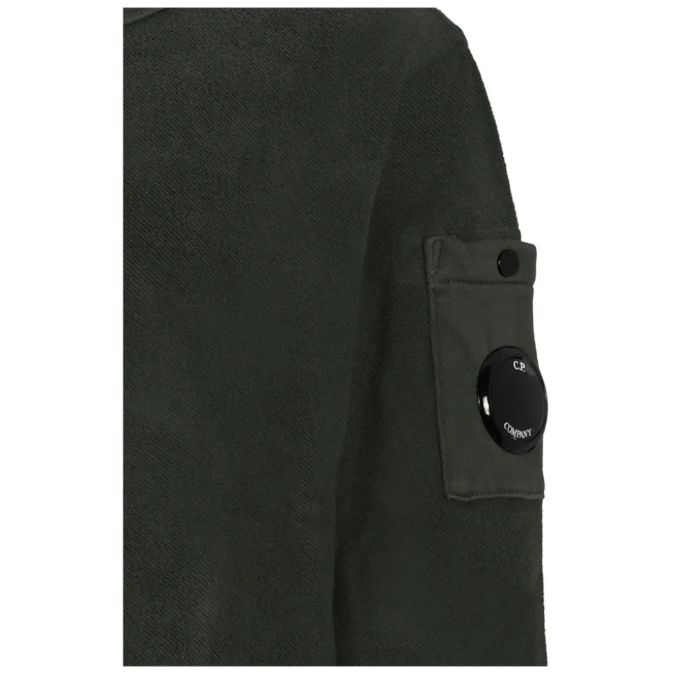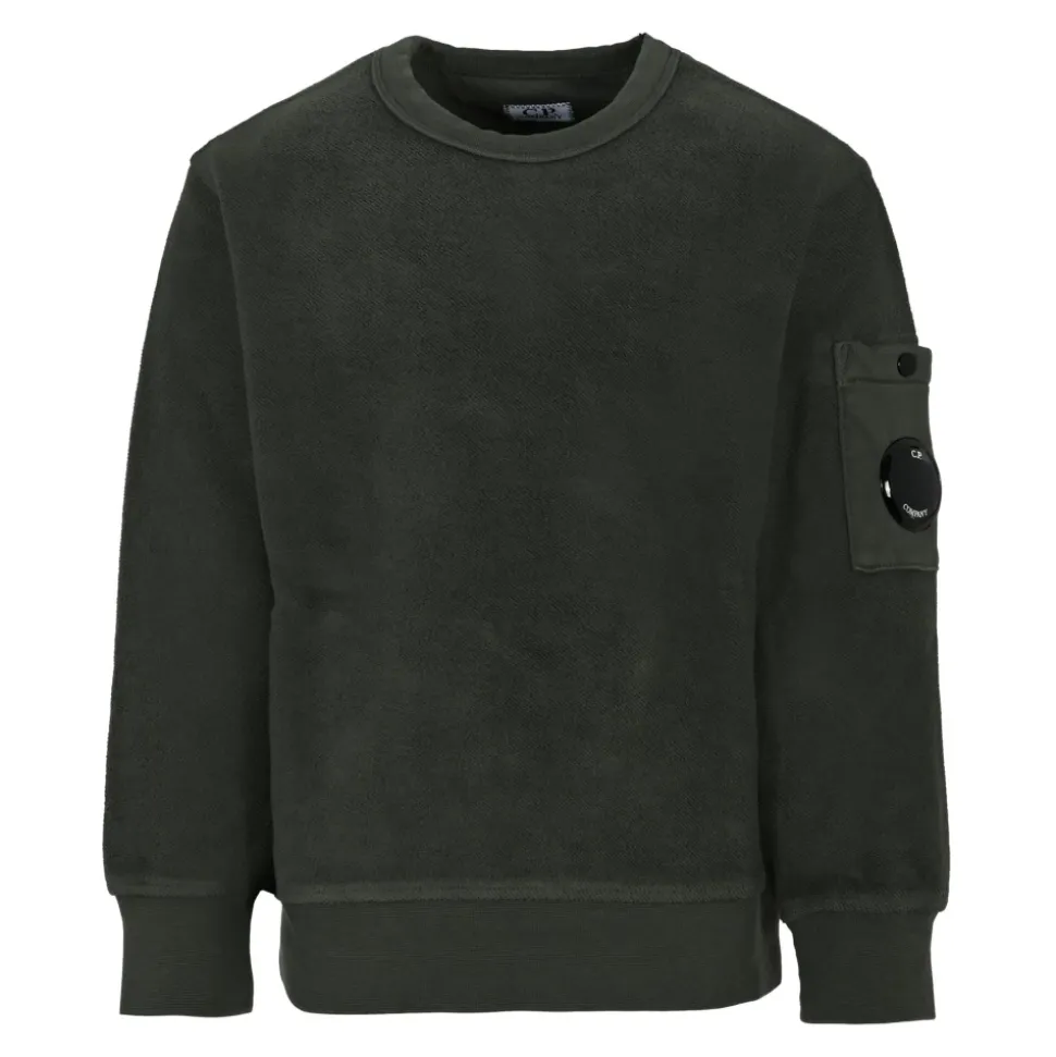 Upgrade de garderobe van je kind met deze groene C.P. Company sweatshirt. Gemaakt van zacht fleece-stof, met lange mouwen, een ronde hals, geribbelde manchetten en zoom, en een uniek knoopzakdetail op de mouw versierd met een lenslogo. Gemaakt van 100% katoen. Machinewasbaar op 30°C.