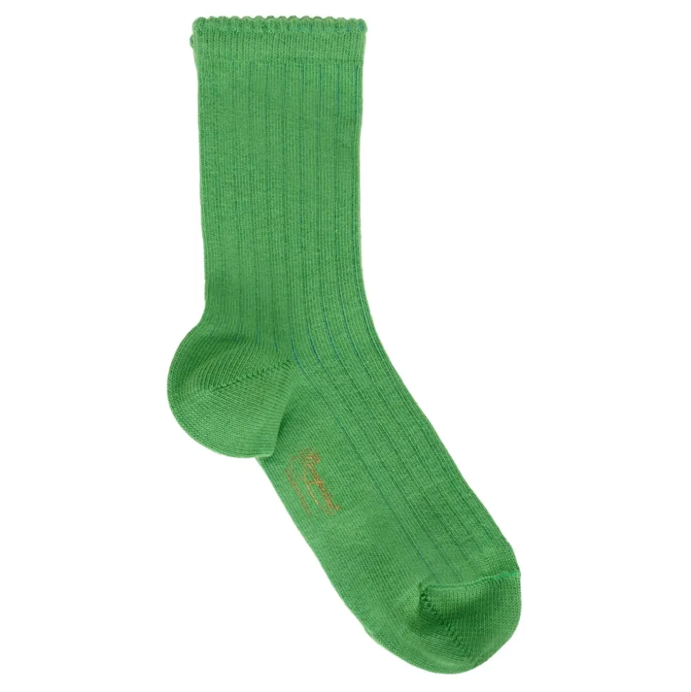 Voeg een vleugje kleur toe aan de garderobe van je kleintje met deze groene sokken van Bonpoint. Met een geribbeld ontwerp en een golvende zoom aan de bovenkant, zijn deze sokken gemaakt van 64% katoen, 33% polyamide en 3% elastaan voor ultiem comfort.