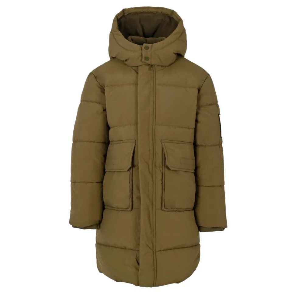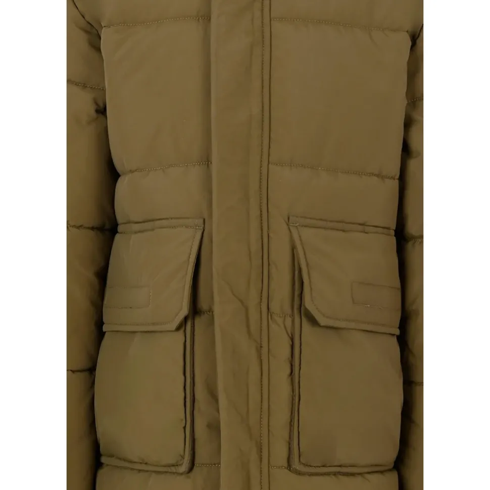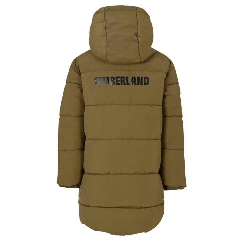Houd je kleintje warm en stijlvol in deze Timberland Kids Green Winter Jacket. Deze lange, zware donsjas heeft een fleece-gevoerde capuchon, een ritssluiting en drukknoopsluiting aan de voorkant en klepzakken aan de voorkant. Gemaakt van polyamide met geribbelde manchetten, versierd met een logo op de achterkant en een rubberen logopatch op de mouw. Machinewasbaar op 30°C.