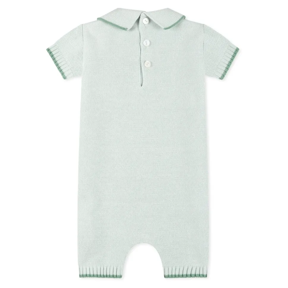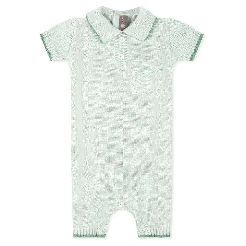 Kleed je kleintje in stijl met deze groene katoenen garenromper van Little Bear. Gemaakt in Italië, deze romper heeft korte mouwen, een puntkraag, moeder-van-parel knoopsluiting, applicatieknopen aan de voorkant, borstzak en geribbelde mouwen en enkels. Alleen handwas.