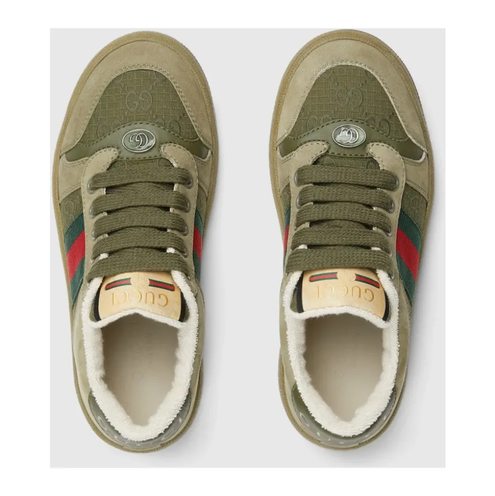 Upgrade de stijl van je kleine jongen met deze Gucci sneakers in groene GG-katoenen ripstop inzetstukken. Met groene en rode Web-stoffen voering, ovaal geëmailleerd detail met metalen Double G, label met Gucci vintage logo, hakhoogte van 1″ en tweekleurige zool. Gemaakt in Italië.