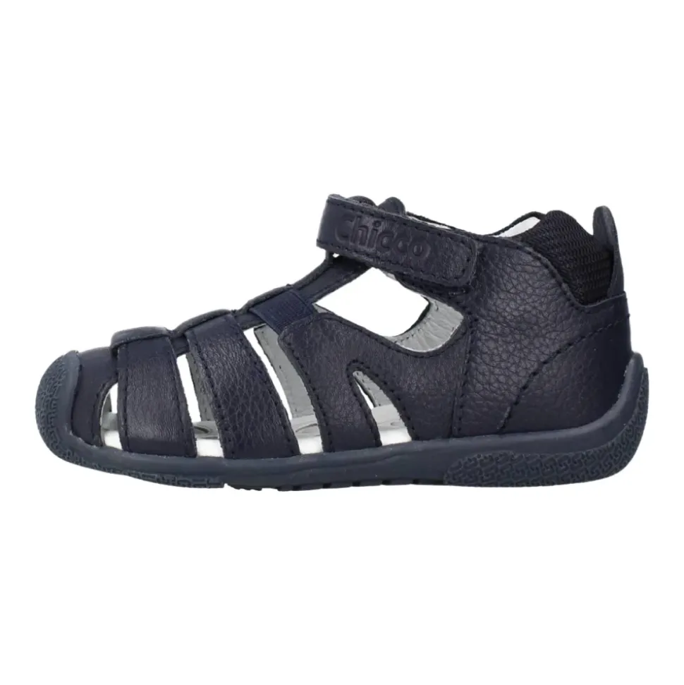 De Chicco Ground Sandal is een platte leren sandaal, ontworpen voor dagelijks, casual gebruik. Het combineert een leren bovenkant met een rubberen zool voor eenvoudig en gebruik. Belangrijkste kenmerken: Blauw | Leer | Samenstelling & onderhoud: Bovenkant: Leer | Voering en binnenzool: Leer | Zool: Rubber