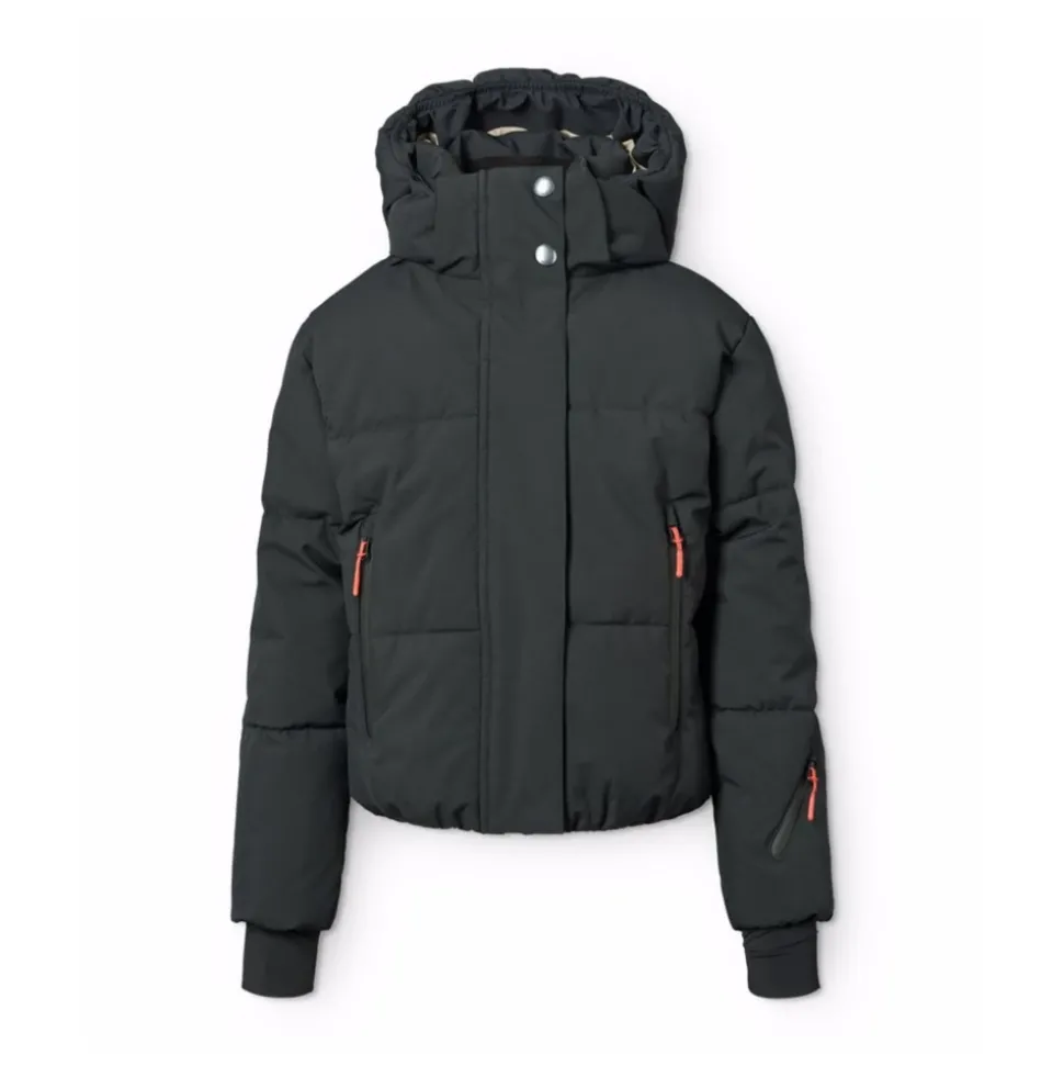 De Molo Hansine Pro Jacket is een hoogwaardig geïsoleerd jack, ontworpen voor koude, natte omstandigheden. Het combineert een wind- en waterdichte buitenlaag met 3M Thinsulate isolatie voor betrouwbare warmte en bescherming tegen het weer. Belangrijkste kenmerken: Zwart | Polyester | Winddicht | Waterdicht (20.000 mm waterkolom) | Ademend (20.000 g/m2/24u) | Geïsoleerd met 3M Thinsulate (geschikt tot ca. -20°C) | Afneembare gevoerde capuchon | Ritssluiting aan de voorkant met stormflap | Waterdichte zakken met ritssluiting | Binnenzak | Duimgaten bij de mouwopeningen | Windvanger in de taille | Opstaande kraag | Stormflap over de ritssluiting aan de voorkant | Gestroomlijnd gewatteerd silhouet | Mouwzak voor skipas | Afmetingen & pasvorm: Valt normaal qua maat | Normale pasvorm | Samenstelling & verzorging: 55% Polyester | 45% Polyester | Fijne was op 30°C. Niet bleken. Niet chemisch reinigen. Gebruik geen wasverzachter. Sluit ritsen en was binnenstebuiten met soortgelijke kleuren. Laag drogen in de droogtrommel; direct verwijderen en ophangen om verder te drogen.