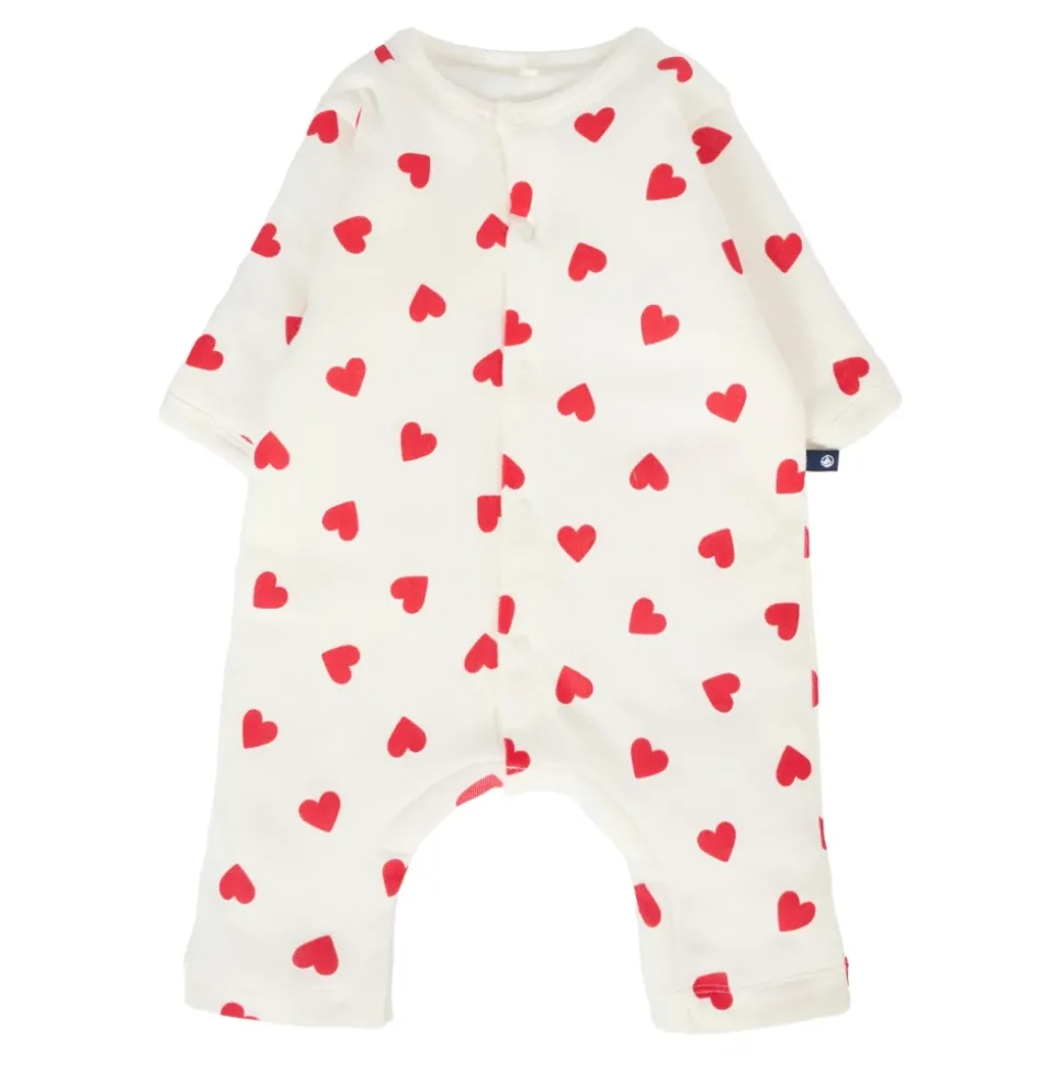 Kleed je kleintje in stijl met deze gewatteerde ivoorkleurige jumpsuit van Petit Bateau. Gemaakt van 100% katoen, met lange mouwen, geribbelde halslijn en zoom, en drukknoopsluiting aan de voorkant en tussen de benen. Versierd met rode hartjes all-over, is deze jumpsuit zowel schattig als comfortabel. Machinewasbaar op 40°C.