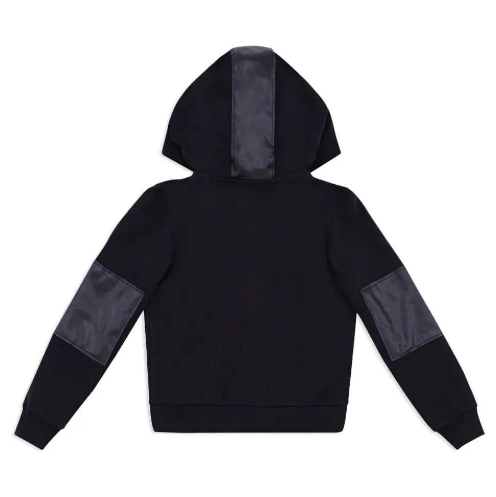 De Billionaire Hoodie Sweatjacket Double B combineert een katoenen fleece constructie met inzetstukken van imitatieleer voor een verfijnde, sportieve look. Het ontwerp met capuchon met katoenen jersey voering, ritssluiting en steekzakken maakt het een praktische laag voor elke dag. Belangrijkste kenmerken: Zwart | Katoenen fleece | Ritssluiting | Twee steekzakken | Details en inzetstukken van imitatieleer op de mouwen, capuchon en langs de rits | Double B logo op de linkerborst genaaid | Geribbelde manchetten en onderzoom | Capuchon met katoenen jersey voering | Samenstelling & onderhoud: 75% katoen, 20% polyester, 5% elastaan | Katoenen jersey voering | Inzetstukken en details van imitatieleer