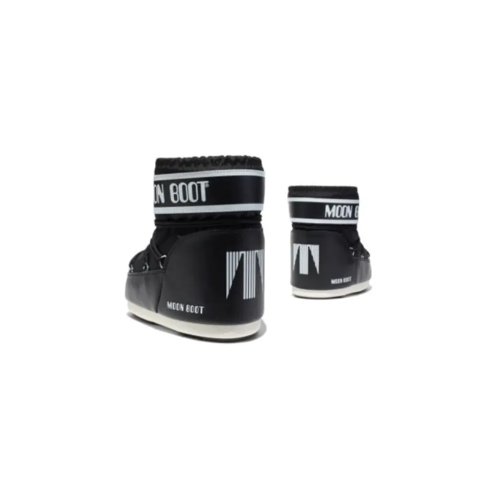 De Moon Boot Icon Low Nylon Boot biedt geïsoleerde, low-profile bescherming voor koud weer. De waterdichte constructie en de rubberen zool met grip maken het een praktische keuze voor sneeuwcondities en après-ski gebruik. Belangrijkste kenmerken: Zwart | PVC | Polyamide | Waterdicht | Geïsoleerd | Antislip rubberen zool | Vetersluiting aan de voorkant | Gevoerde/geïsoleerde voering | Platte rubberen buitenzool | Enkellengte | Ronde neus | Gedrukt logo op de zijkant | Logo op de hiel | Logobanddetail | Gewatteerd ontwerp | Samenstelling & onderhoud: Voering: 100% polyester | Zool: 100% rubber | Buitenkant: 100% PVC, 100% polyamide | Reinigen met een vochtige doek. Niet in de wasmachine. Bewaren op een koele, droge plaats.
