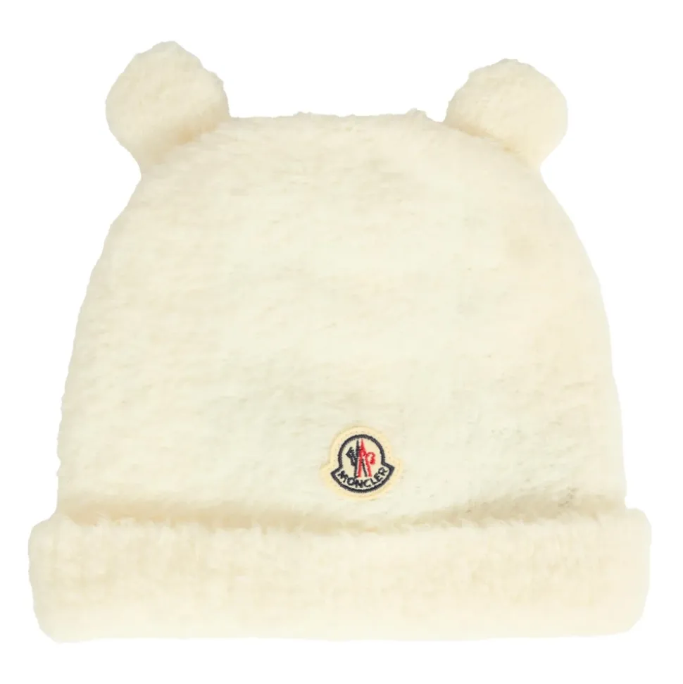 Upgrade de stijl van je kleintje met deze Moncler ivoorkleurige wollen muts met geribbelde boord, schattige oren aan de zijkanten en het iconische logopatch aan de voorkant. Gemaakt in Italië van 77% wol en 23% polyamide. Alleen handwas.