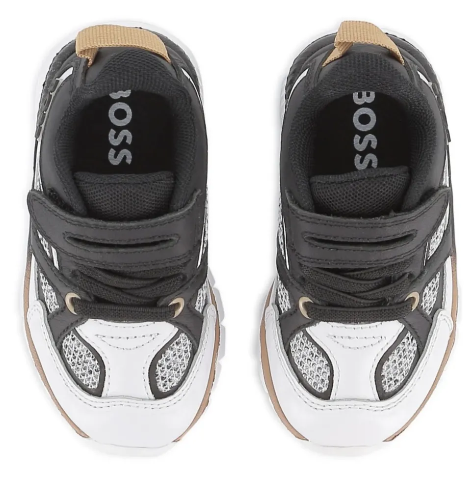 Hugo J52578N50 Sneakers combineren leer en mesh panelen met een rubberen zool voor ademend, dagelijks comfort. Ze zijn voorzien van een logo detail op de hiel en een panelen ontwerp, ideaal voor casual gebruik. Belangrijkste kenmerken: Wit | Leer | Ademende mesh panelen | Rubberen zool | Stoffen voering | Logo print op de hiel | Mesh inzetstukken met panelen | Samenstelling & onderhoud: Buitenkant (leer): 100% leer | Mesh panelen: 100% mesh | Voering: 100% textiel | Zool: 100% rubber