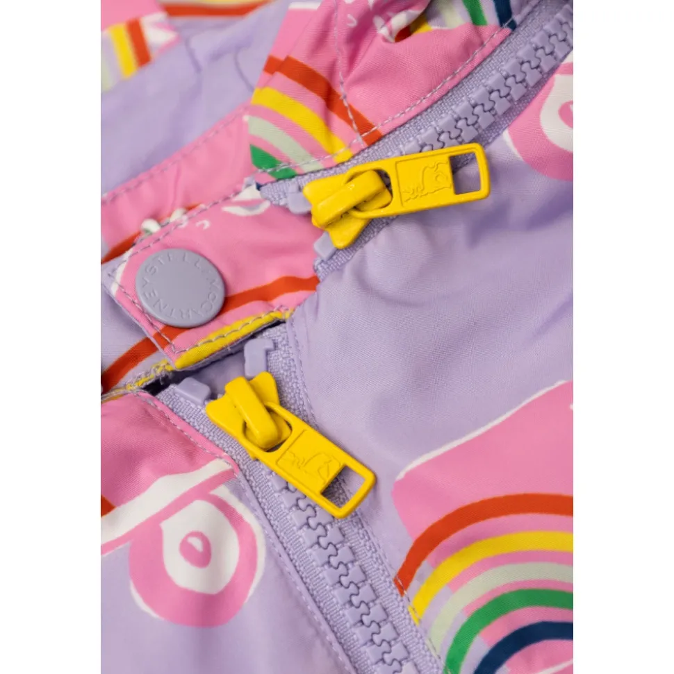 Wij presenteren de JAS MET EEN AFNEEMBARE CAPUCHON van het gerenommeerde merk Stella McCartney Kids, dat al jarenlang verrast met zijn unieke ontwerpen voor de allerkleinsten. Dit model, ontworpen voor kinderen van 0 tot 36 maanden, straalt vreugde uit met zijn PAARSE KLEUR en kleurrijk patroon met een regenboogmotief en roze auto’s. Gemaakt van lichtgewicht en waterdicht polyester, is de jas perfect voor regenachtige dagen en biedt bescherming en comfort. De AFNEEMBARE CAPUCHON verhoogt de functionaliteit, en de elastische manchetten, gemaakt van paars materiaal, zorgen voor comfort en bescherming tegen de wind. Een gele rits met een subtiel ontwerperslogo voegt elegantie toe aan het geheel. WAAROM ZOU U DIT PRODUCT KOPEN? * Uniek ontwerp met een regenboogmotief en roze auto’s. * Waterdicht materiaal ideaal voor regenachtige dagen. * Afneembare capuchon die de functionaliteit verhoogt. * Elastische manchetten voor comfort en bescherming tegen de wind. * Exclusief Stella McCartney Kids-merk dat de hoogste kwaliteit garandeert.
