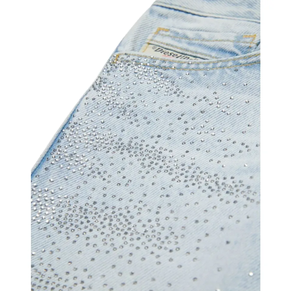 De Diesel jeans met strasssteentjes in een lichte wassing combineren een klassieke lichte wassing met heldere strass-versieringen over het hele oppervlak voor een opvallende alledaagse look. Belangrijkste kenmerken: Blauw | Denim | Katoen | Vijfzakkenmodel | Lichte wassing | Heldere strass-versiering over het hele oppervlak | Iconische merkpatch op de achterkant | Afmetingen en pasvorm: Regular fit | Normale taille | Samenstelling en onderhoud: 100% katoen