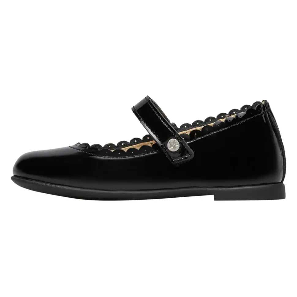 De Naturino Jelki 2 Ballerina is een ballet flat van lakleer die een geschulpte halslijn combineert met een wreefband voor een veilige, comfortabele pasvorm. Hij is ontworpen voor geklede gelegenheden en alledaagse, nette looks. Belangrijkste kenmerken: Zwart | Lakleer | Antislip rubberen buitenzool | Flexibele rubberen zool | Klittenbandsluiting op de wreef | Leren voering en binnenzool | Ronde neus | Geschulpte halslijn | Glanzende lakafwerking | Samenstelling & onderhoud: Bovenwerk van lakleer | Leren voering | Leren binnenzool | Rubberen buitenzool