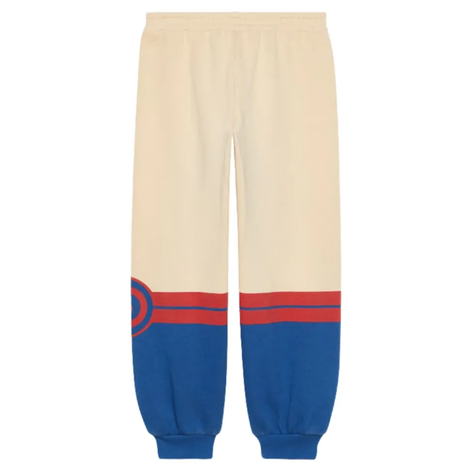 Gucci presenteert de Jersey Cross GG Broek, een stijlvolle toevoeging gemaakt voor comfort en flair. Deze broek is voorzien van een opvallende rode GG interlocking print op een blauw/beige katoenen jersey basis. Belangrijkste kenmerken: Blauw | Beige | Rood | Katoen Jersey | Slip-on model | Elastische tailleband | Elastische enkels | Contrasterende GG print | Afmetingen en pasvorm: Normale pasvorm | Samenstelling en onderhoud: 100% Katoen | Machinewas koud, droogtrommel laag.