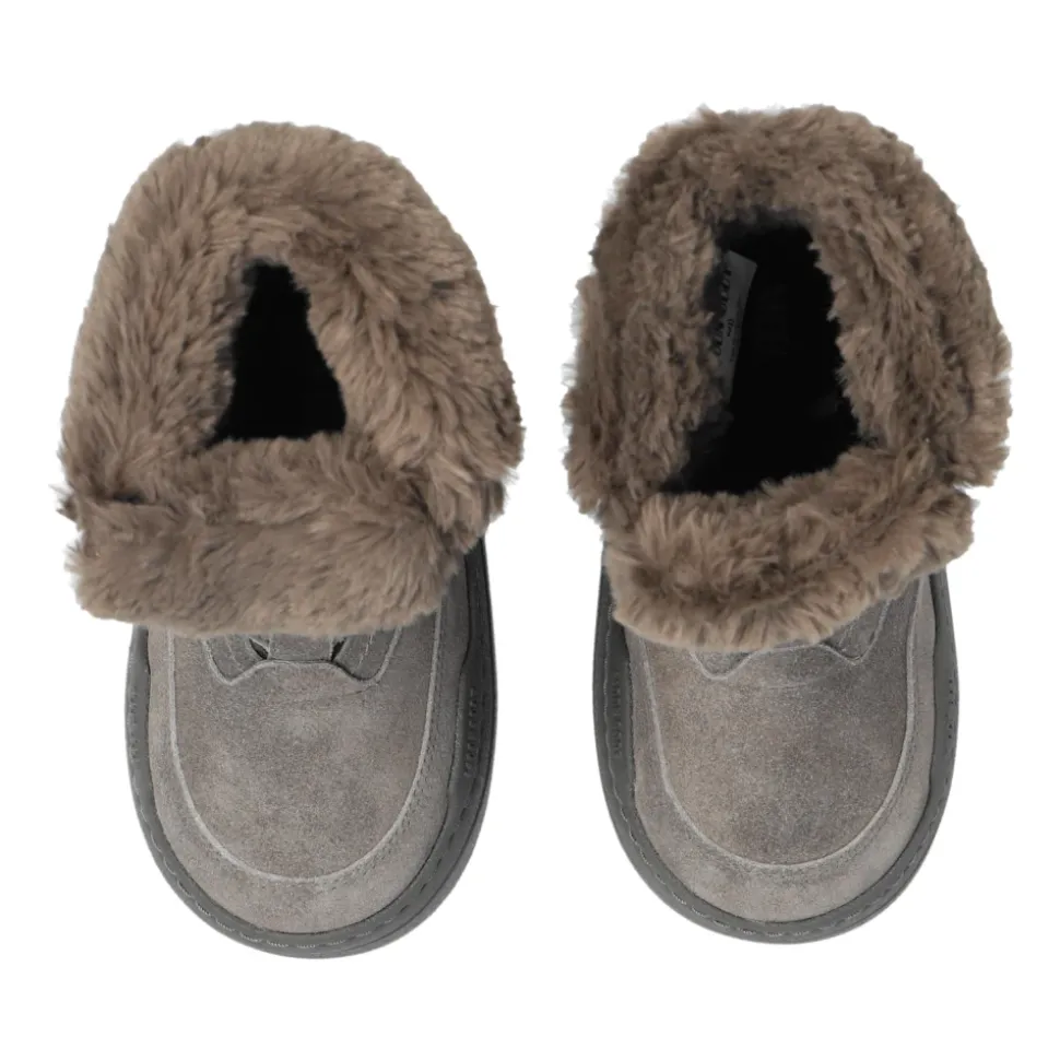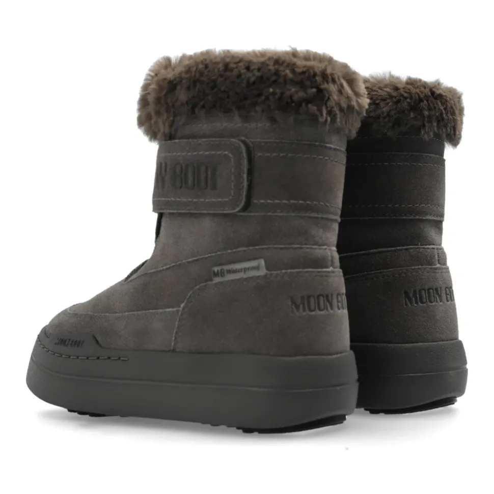 Ontdek de Jr Park Strap Boot Suede van Moon Boot, ontworpen voor stijl en warmte met zijn elegante grijze suède en knusse, harige voering. Belangrijkste kenmerken: Grijs | Suède | Klittenbandsluiting | Afgeronde vorm | Hoge schacht |