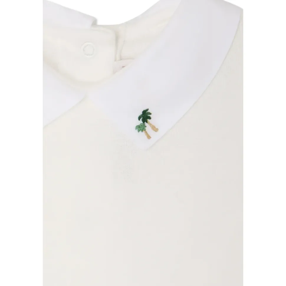 De Bonpoint Juillet Bodysuit combineert een klassiek, licht uitlopend silhouet met een fijn geborduurd, afgerond kraagje voor comfortabel dagelijks gebruik. Belangrijkste kenmerken: Wit | Katoen | Zacht gevoel | Ademende stof | Drukknoopsluitingen aan de achterkant en in het kruis voor gemakkelijk aan- en uitkleden en verschonen | Afgeronde kraag met fijne borduursels | Geborduurd motief met een groene plant en een palmboom | Afmetingen & pasvorm: Klassieke lijn | Licht uitlopende snit | Samenstelling & verzorging: 100% katoen