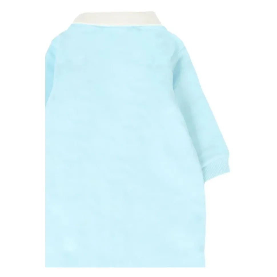 De Moschino Jumpsuit combineert een speelse teddybeer-logoprint met een drukknoopsluiting voor gemakkelijk aankleden. Het ontwerp met lange mouwen is ideaal voor dagelijks gebruik en snelle outfitwisselingen. Belangrijkste kenmerken: Blauw | Katoen | Drukknoopsluiting | Sluiting aan de voorkant met knopen | Peter Pan-kraag | Lange mouwen | Logoprint | Teddybeerpatroon | Afmetingen en pasvorm: Regular fit | Samenstelling en verzorging: 100% katoen