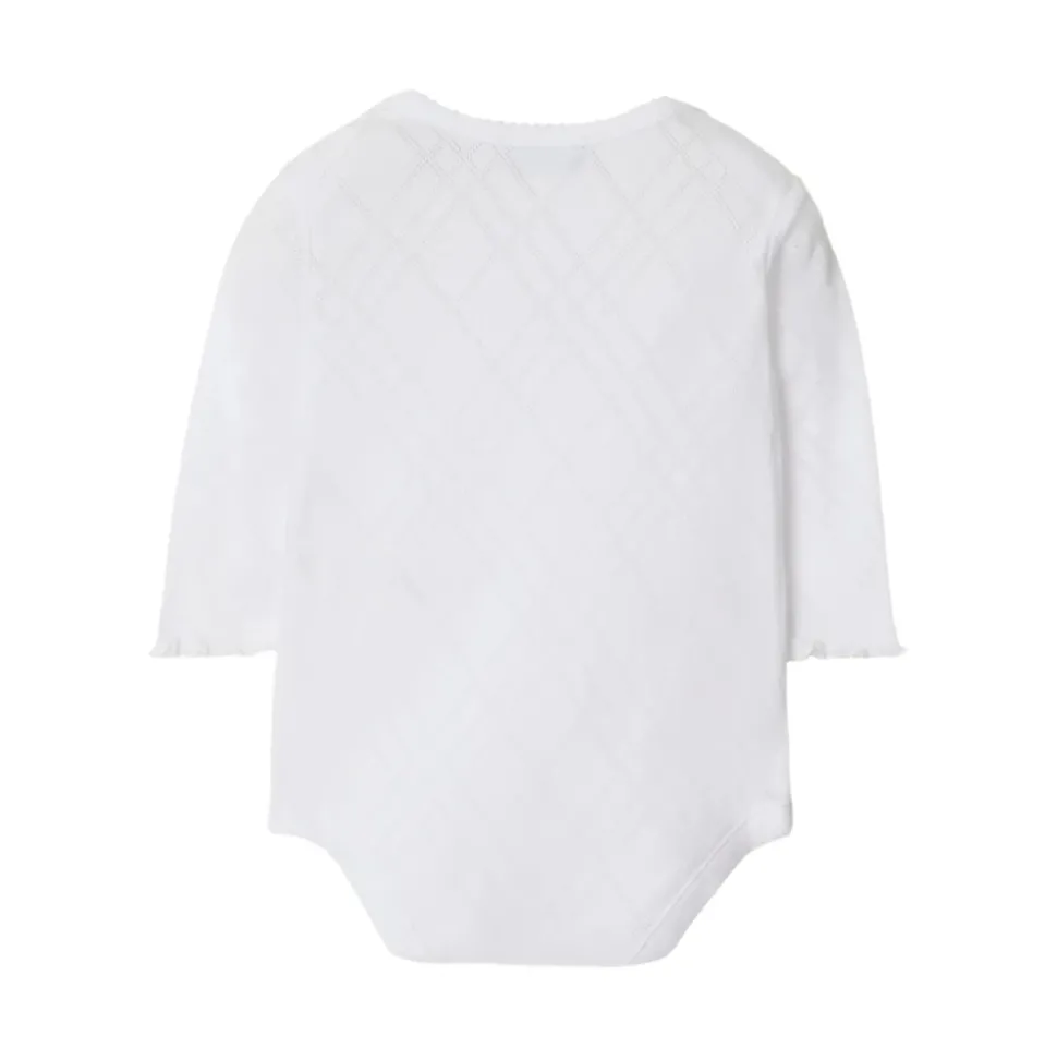 Burberry Kids witte ronde hals body met drukknoopsluiting, met grafische print op de voorkant en lange mouwen.