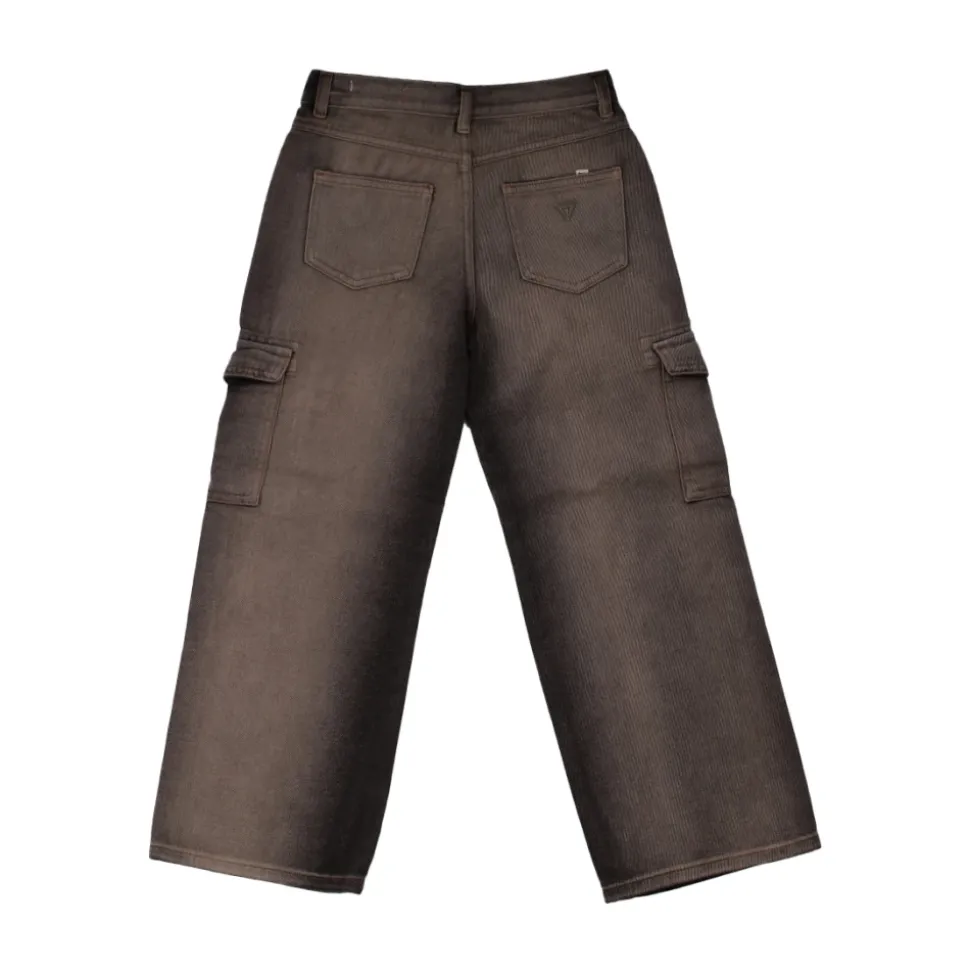 Guess Junior Meisjesbroek met Logo op de Achterkant. Ritssluiting en knoopsluiting, twee zij- en voorzakken, twee achterzakken, afneembare riem. Samenstelling: 100% katoen. Leverancierscode: J5RA13 D5J40ITWA.