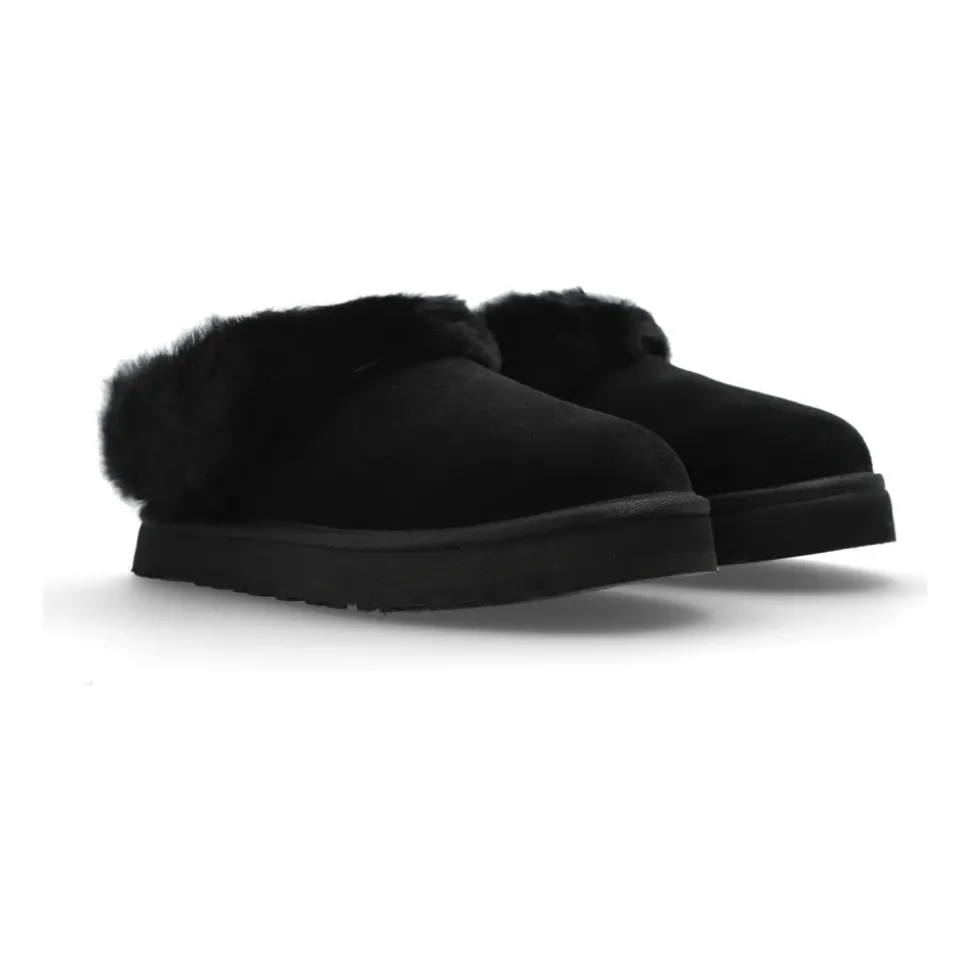 UGG K Tazzelle Schoenen combineren een laag clog silhouet met een zachte voering voor warm, comfortabel draagcomfort zowel binnen als buiten. Belangrijkste kenmerken: Zwart | Suède | Warme, isolerende voering | Vochtafvoerende binnenlaag | Temperatuurregeling | Instapmodel | Treklus aan de achterkant voor gemakkelijk aan- en uittrekken | Stabiele platte rubberen buitenzool | Laag, afgerond clog silhouet | Vaste pluche rand | Subtiel logo in reliëf op de hiel | Monochromatische afwerking | Afmetingen & pasvorm: Zoolhoogte: 2,5 cm | Samenstelling & verzorging: Suède | Bont | Wol | Lyocell | Rubber