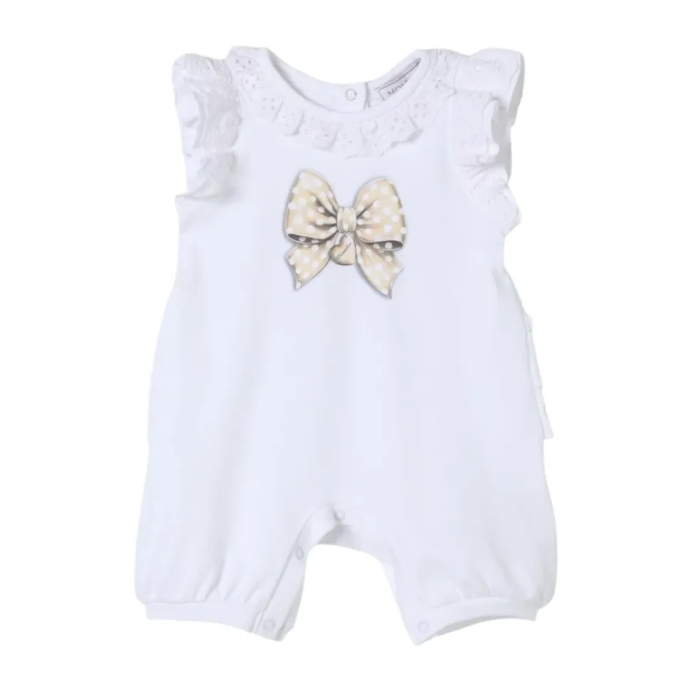 Kleed je kleine meid in stijl met deze schattige Monnalisa babyromper. Met een leuke strikdetail en charmante kanten accenten is deze romper gemaakt van zacht en ademend katoenen kant, wat zorgt voor comfort de hele dag door en gemakkelijk onderhoud.