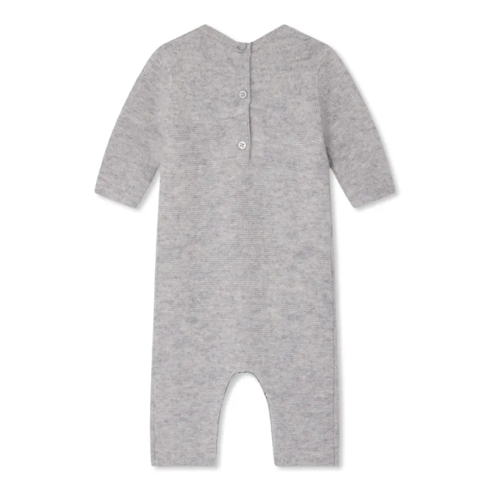 CASHMERE JUMPSUIT van Bonpoint is de quintessens van luxe in een kinderversie. Gemaakt in een subtiele grijstint, boeit het met zijn klassieke eendelige ontwerp met lange mouwen en pijpen, delicaat afgewerkt met een eenvoudige geribbelde afwerking bij de hals. Het zorgvuldig gemaakte, zachte kasjmier breisel omarmt zachtjes de gevoelige huid van een kind met buitengewone delicatesse en biedt uitzonderlijke warmte. De gladde textuur van de stof en het ontbreken van prints benadrukken het tijdloze karakter van het ontwerp, terwijl het subtiele koalahoofd-patch – geplaatst op de linkerborst – een voortreffelijk, onderscheidend detail toevoegt. De discrete charme van Franse elegantie, zo kenmerkend voor het modehuis Bonpoint, schittert hier duidelijk door. WAAROM ZOU U DIT PRODUCT KOPEN? * Gemaakt van zacht, voortreffelijk kasjmier breisel * Tijdloze, klassieke snit * Subtiel detail – de koala patch die de uniekheid van het product benadrukt * Neutrale, elegante kleur perfect voor elke gelegenheid * Een creatie van het gerenommeerde Parijse modehuis Bonpoint