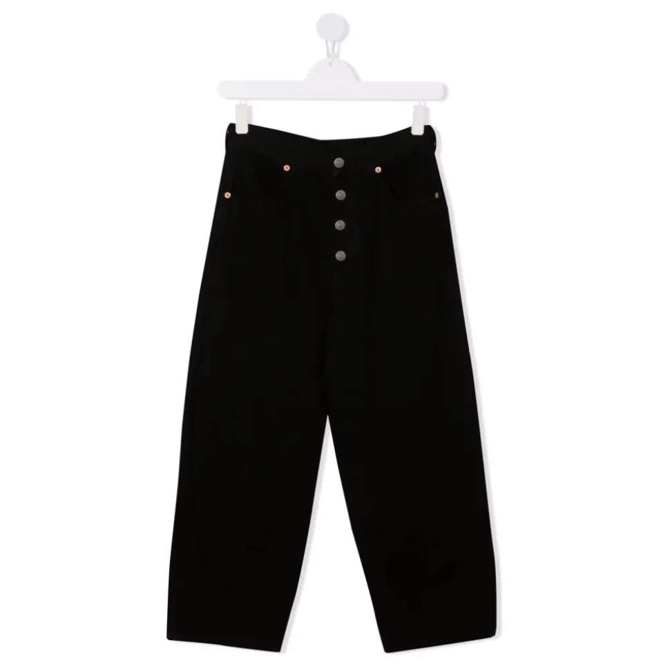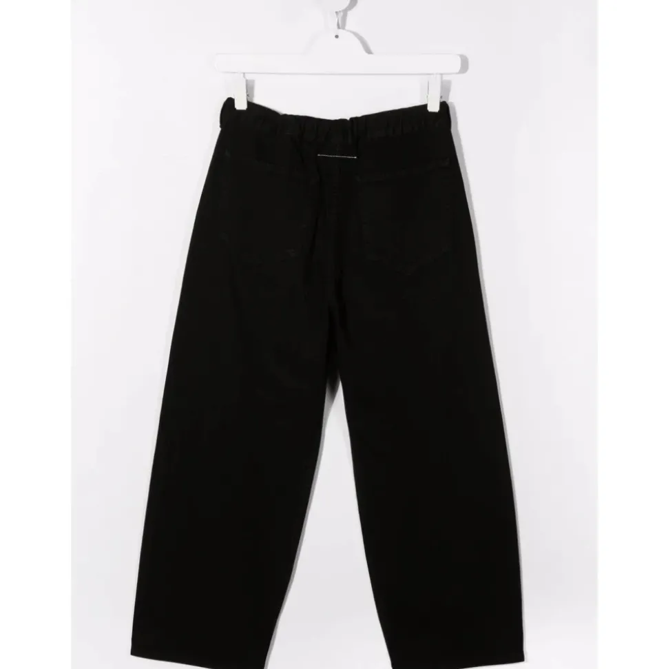 Upgrade de garderobe van je kleine meisje met deze Maison Margiela Zwarte Katoenen Wijde Pijp Jeans. Met een mid-rise pasvorm, knoopsluiting aan de voorkant en vijf zakken zijn deze wijde pijp jeans perfect voor elke gelegenheid. Gemaakt van 100% katoen, ze zijn zowel comfortabel als stijlvol.