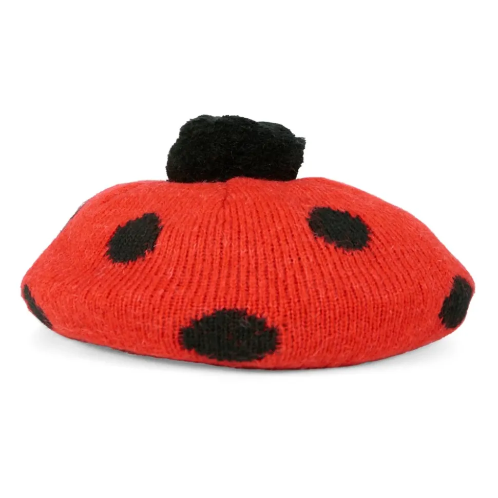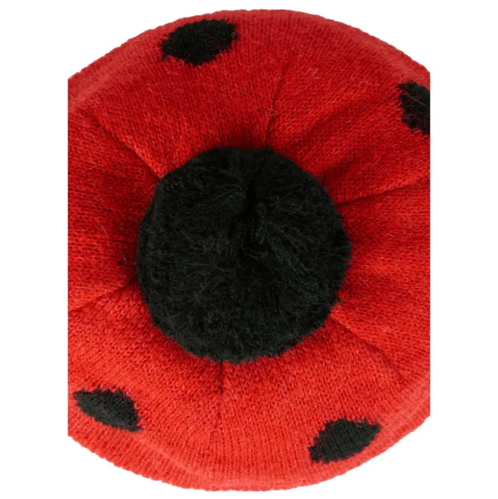 Kersen Baskische Gebreide Baret met Lieveheersbeestjesprint