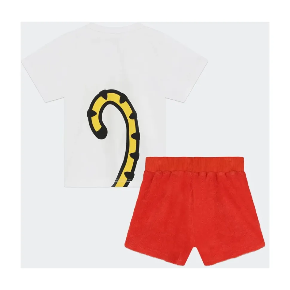 Kenzo set bestaande uit een top met korte mouwen en ronde hals met prints voor en achter, en een contrasterende bermuda short met trekkoord in de taille en een tijgermotief aan de zoom. Belangrijkste kenmerken: Rood | Rosso | Katoen | Verstelbaar trekkoord in de taille | Ronde hals | Korte mouwen | Print voor en achter | Contrasterende bermuda | Tijgermotief aan de zoom | Samenstelling & verzorging: 63% Katoen, 37% Modal | Afwerking: 96% Katoen, 4% Elastaan | Voering: 100% Katoen | Volg de wasvoorschriften op het interne label van het kledingstuk.