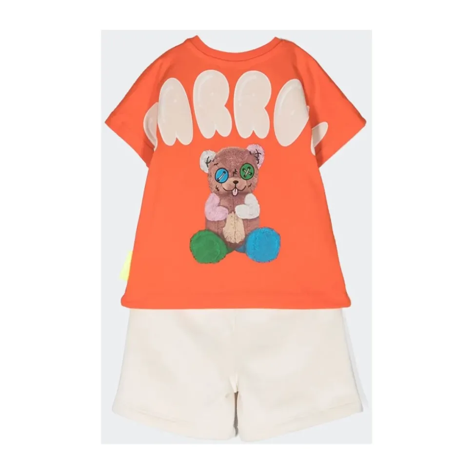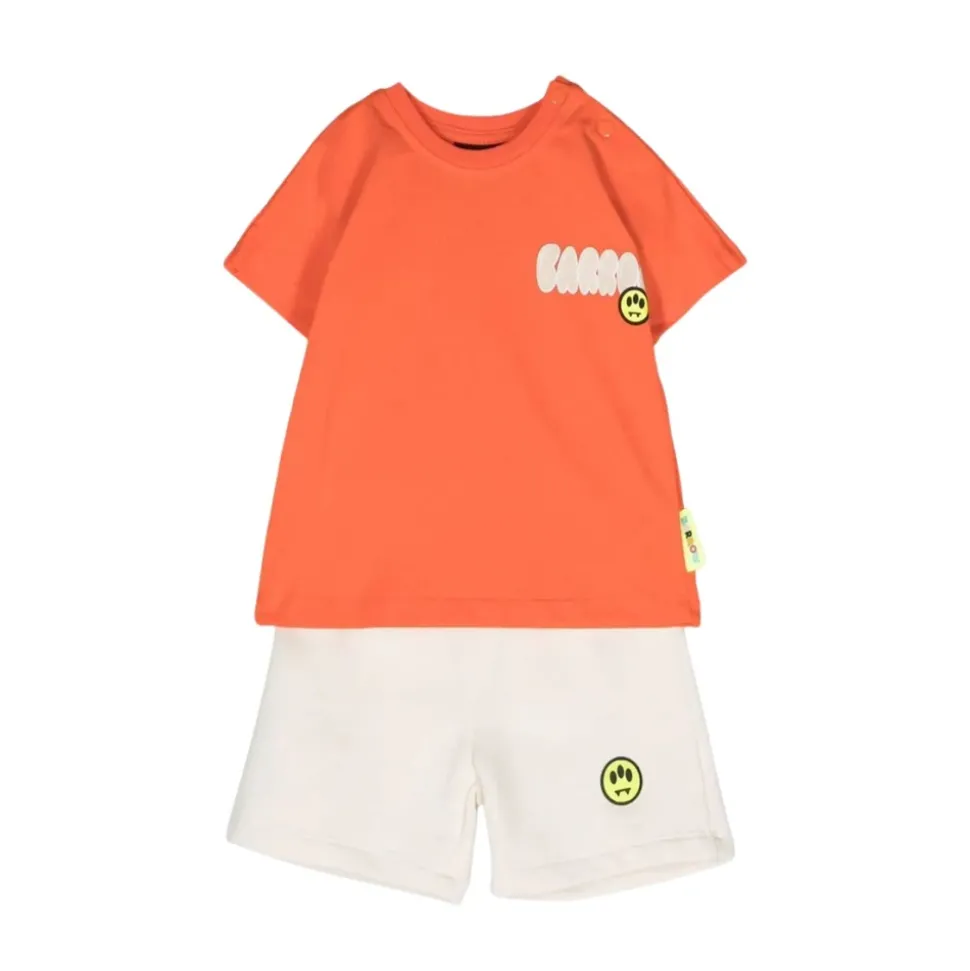 De BARROW sportset combineert een katoenen T-shirt met ronde hals en drukknoopsluiting op de linkerschouder met een lichtgewicht bermuda short met patch- en smile-prints. Ontworpen voor gemakkelijk aan- en uittrekken en dagelijks actief gebruik. Belangrijkste kenmerken: Oranje | Arancio | Katoen | Drukknoopsluiting op de linkerschouder | Gemakkelijk aan/uit design | Ronde hals | Korte mouwen | Print aan de voorkant op het T-shirt | Patch- en smile-prints op de shorts | Bermuda lengte shorts | Samenstelling & verzorging: 100% katoen | Volg de wasinstructies op het waslabel in het kledingstuk.