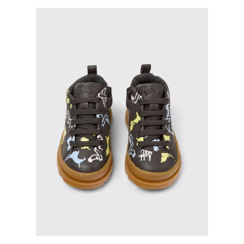 Voeg een speelse touch toe aan de outfit van je kind met deze Camper enkellaarsjes met een unieke grafische print. De vetersluiting zorgt voor een veilige en verstelbare pasvorm. Gemaakt van een leren bovenwerk en rubberen zool.