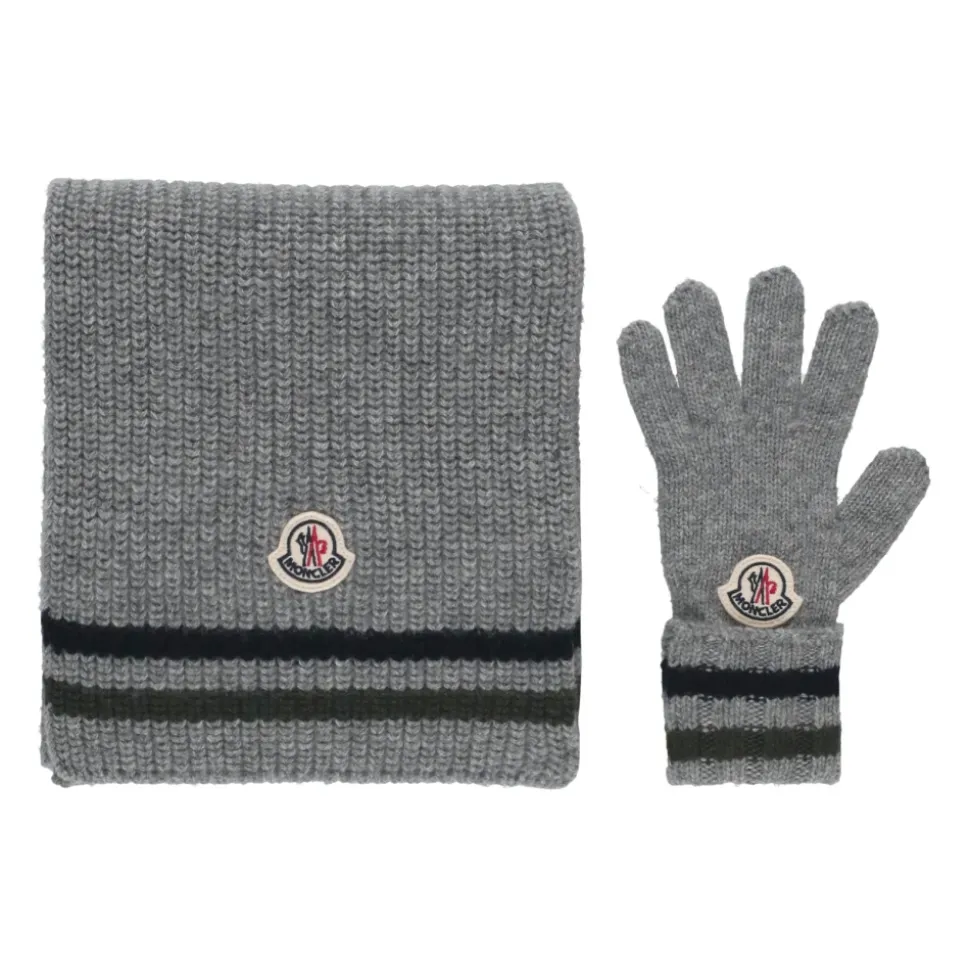 Blijf warm in stijl met deze grijze Moncler Enfant wollen sjaal en handschoenenset voor jongens. De sjaal heeft een contrasterende kleur logo-patch, terwijl de handschoenen ook een bijpassende logo-patch hebben. Perfect om je kleintje gezellig en modieus te houden.
