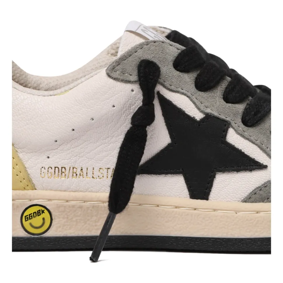 Upgrade de stijl van je kleine jongen met Golden Goose Kids Gray and Multicolour Ball Star Sneakers. Deze grijze sneakers hebben suède inzetstukken, een zwarte ster, een goudkleurige hielkap, leren bovenkant en vetersluiting.