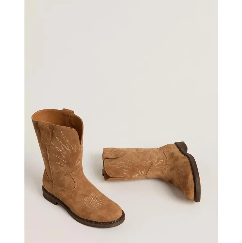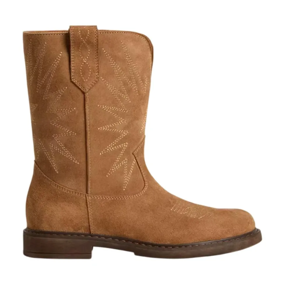 Golden Goose Kinderlaarzen in kameelkleurig suède met ton sur ton sterrenborduursel en stiksels op de neus. Antislip rubberen zool. Gemaakt van 100% LH-stof.