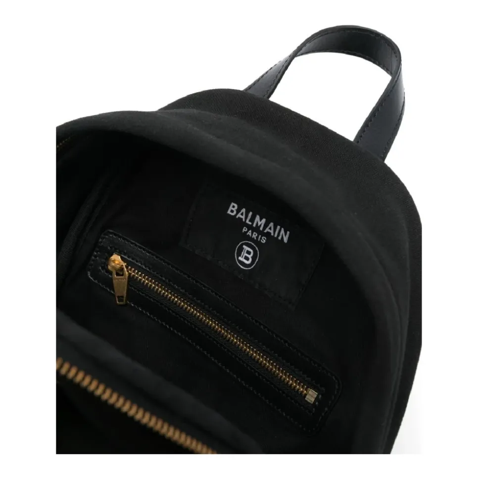 Verhoog de stijl van je kind met deze luxueuze Balmain Kids-rugzak. Gemaakt van 100% katoen in een elegant zwart goud ontwerp, combineert het moeiteloos functionaliteit en mode, waardoor het de perfecte accessoire is voor elk avontuur.