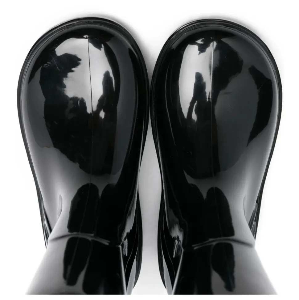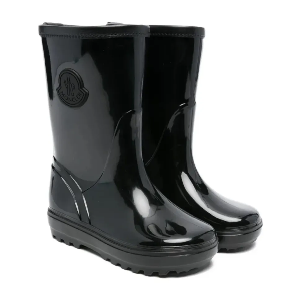 Moncler zwarte regenlaarzen voor kinderen met logo embleem, ronde neus en treklip.