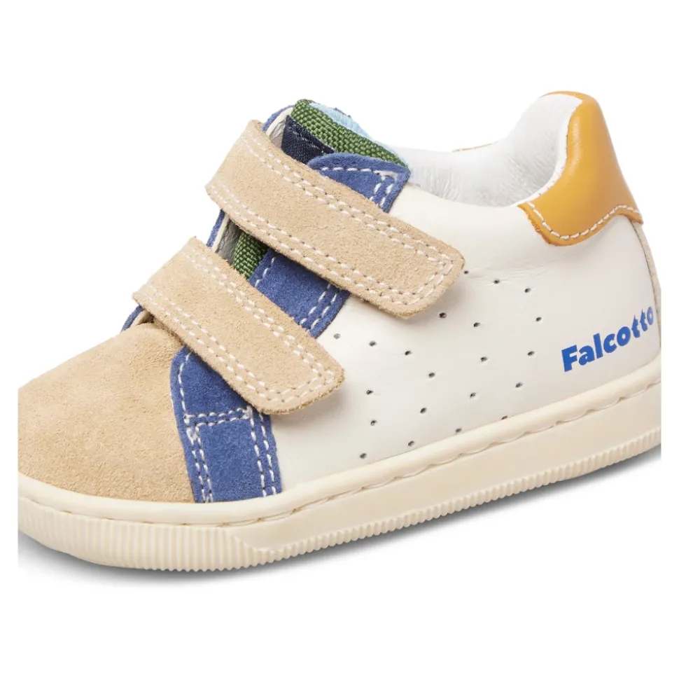 Falcotto KINER VL sneakers combineren leer en suède voor een ademend, ondersteunend draagcomfort, elke dag weer. Ontworpen voor actieve dagen, met geperforeerd bovenwerk en een antislip rubberen zool voor stevige stappen. Belangrijkste kenmerken: Multicolor | Wit | Beige | Leer en suède | Geperforeerd bovenwerk voor ademend vermogen | Rubberen antislip zool met profiel | Dubbele band (klittenbandsluiting) | Leren binnenzool | Contrasterende suède neus en inzetstukken | Logo op leren bumper/achterkant | Afmetingen en pasvorm: Ondersteunende enkelconstructie voor stabiele beweging | Dubbele klittenbandsluiting voor een stevige pasvorm | Samenstelling en onderhoud: Leer | Suède | Rubber
