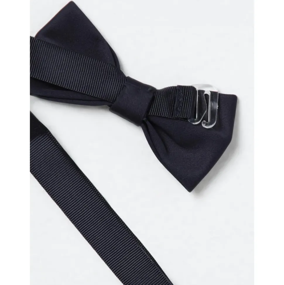 De vlinderdas lijkt gemaakt te zijn van een glad, mogelijk satijnachtig stof. Het band is een grosgrain lint.