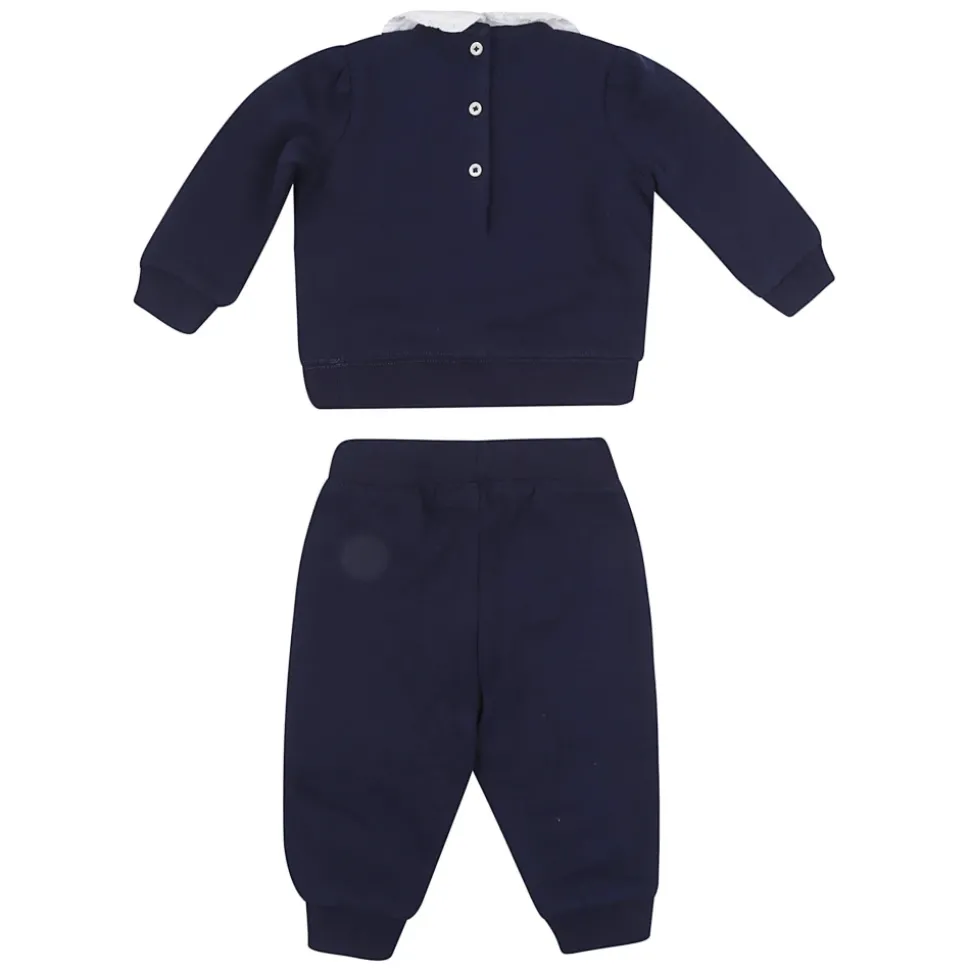 De Ralph Lauren Knit-Pant Set combineert een marineblauw shirt met kraag met een bijpassende gebreide broek voor een verzorgde, gemakkelijke outfit. Het shirt heeft een knoopsluiting aan de voorkant, een trekkoord in de taille en lange mouwen voor verstelbaar comfort en dagelijks gebruik. Belangrijkste kenmerken: Blauw | Marineblauw | Knoopsluiting | Trekkoord in de taille | Kraag | Lange mouwen | Tweedelige set