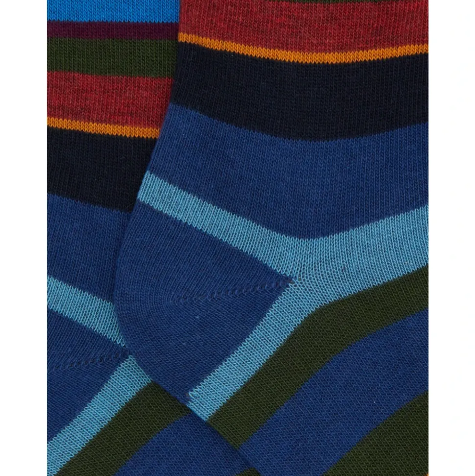 Gallo Korte Sokken: zachte, elastische katoenen korte sokken met iconische meerkleurige blauwe strepen en het merk geborduurd op de teen. Ontworpen om een speels, herkenbaar accent toe te voegen aan alledaagse outfits. Belangrijkste kenmerken: Meerkleurig | Blauw | Katoen | Zacht gevoel | Stretch | Elastische boord | Stretchconstructie voor comfort | Gestreept patroon | Logo geborduurd op de teen | Afmetingen & pasvorm: Korte lengte (enkelhoogte) | Samenstelling & onderhoud: Machinewas koud (max. 40°C), normale cyclus. Niet bleken. Chemisch reinigen toegestaan. Niet strijken. Niet in de droogtrommel.