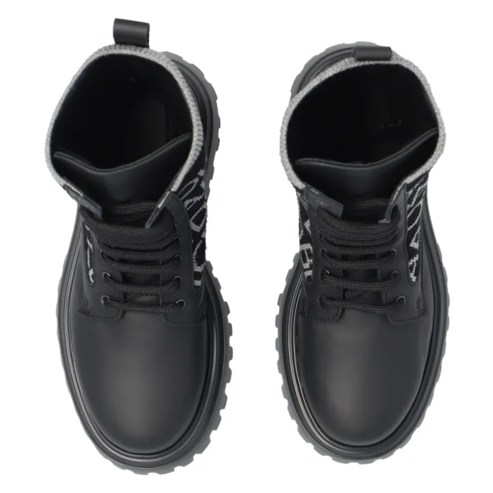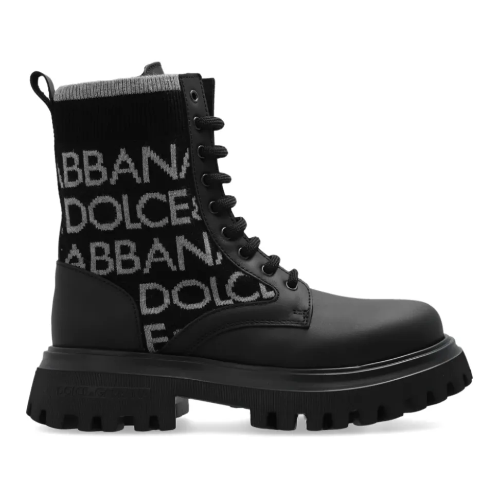 Zwarte laarzen van Dolce & Gabbana Kids. Gemaakt van stof geborduurd met een grijs logo, dit paar met veters is afgewerkt met leer en heeft een zwarte rubberen zool.Zoolhoogte: 3,5 cmZoolhoogte op het hoogste punt: 4,5 cm