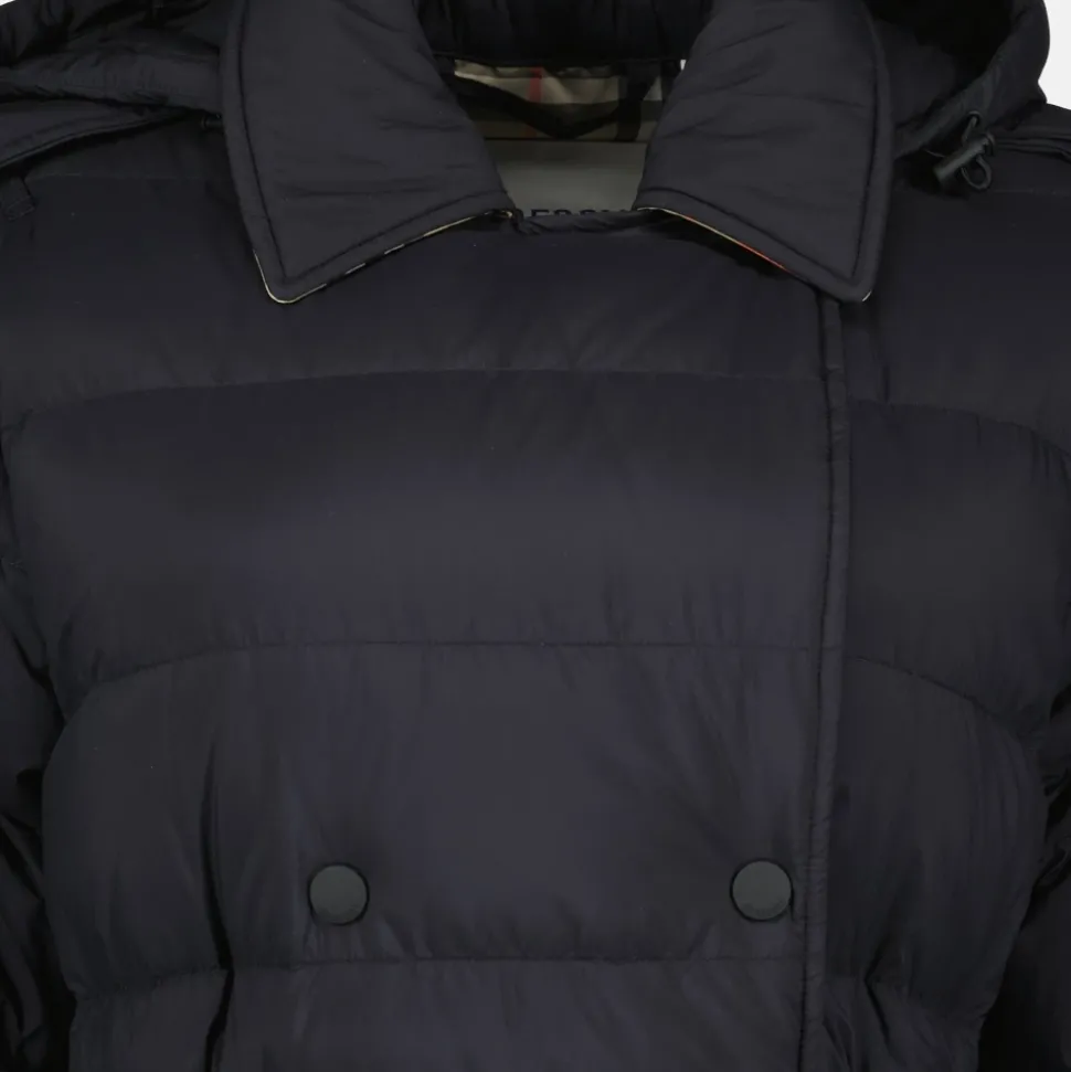 Blijf stijlvol en gezellig in de lange nylon parka van Burberry voor vrouwen, perfect voor herfst-winter 2025. Dit elegante stuk heeft een afneembare capuchon en chique design, waarbij comfort en stijl moeiteloos worden gecombineerd.
