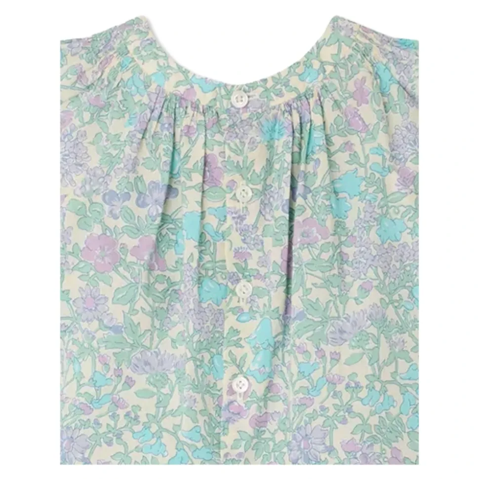 De Bonpoint Laurie Top combineert een lichtgewicht katoenen constructie met een los trapeze silhouet en kenmerkend smockborduurwerk. Het ontwerp benadrukt comfort en gemakkelijk aankleden met een delicate bloemenprint en knoopsluiting aan de achterkant. Belangrijkste kenmerken: Blauw | Katoen | Lichtgewicht | Zacht handgevoel | Zacht voor de gevoelige huid | Volledige knoopsluiting aan de achterkant | Gemakkelijk aan te trekken | Trapeze silhouet | Licht uitlopende zoom | Volantmouwen | Smock voorkant met zigzagborduurwerk | Kleine bloemenprint over de hele stof | Decoratieve knopen aan de achterkant | Afmetingen en pasvorm: Losse pasvorm | Trapeze silhouet | Samenstelling en onderhoud: Katoen