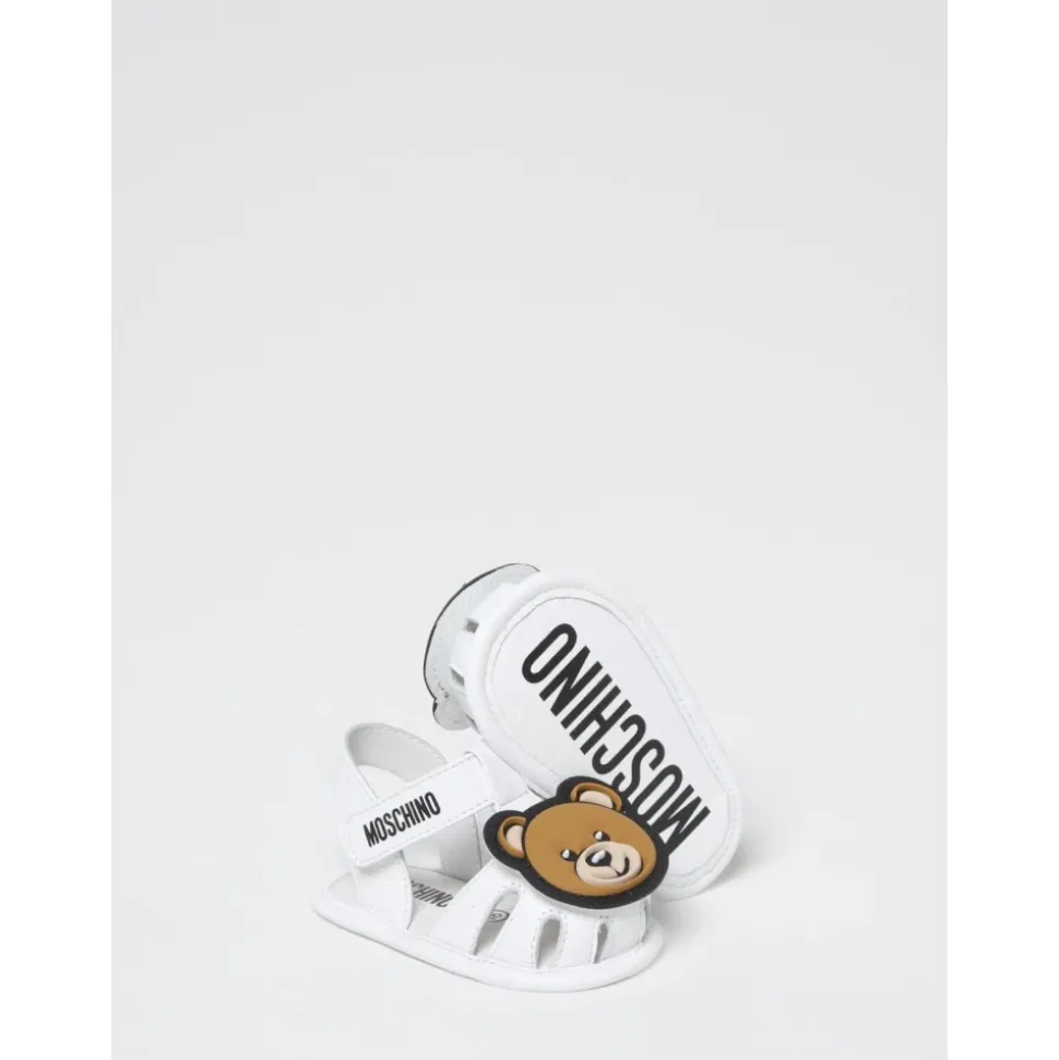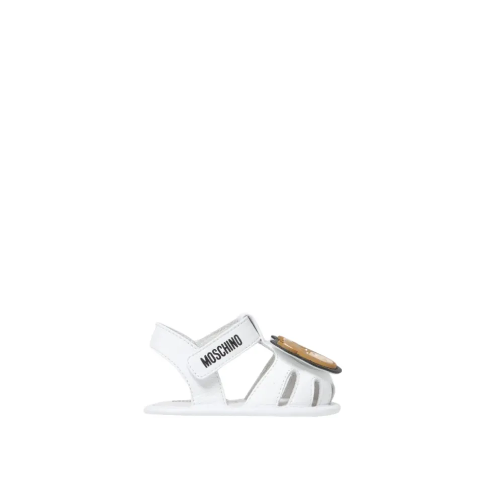Geef de garderobe van elk kind een boost met deze stijlvolle Leren Baby Teddy Sandalen van Moschino, ontworpen voor zowel comfort als elegantie. Belangrijkste kenmerken: Wit | Leer | constructie | Verstelbare bandjes | Teddybeer motief | Afmetingen en pasvorm: Normale pasvorm | Samenstelling en onderhoud: Leren bovenkant | Rubberen zool | Schoonvegen met een vochtige doek