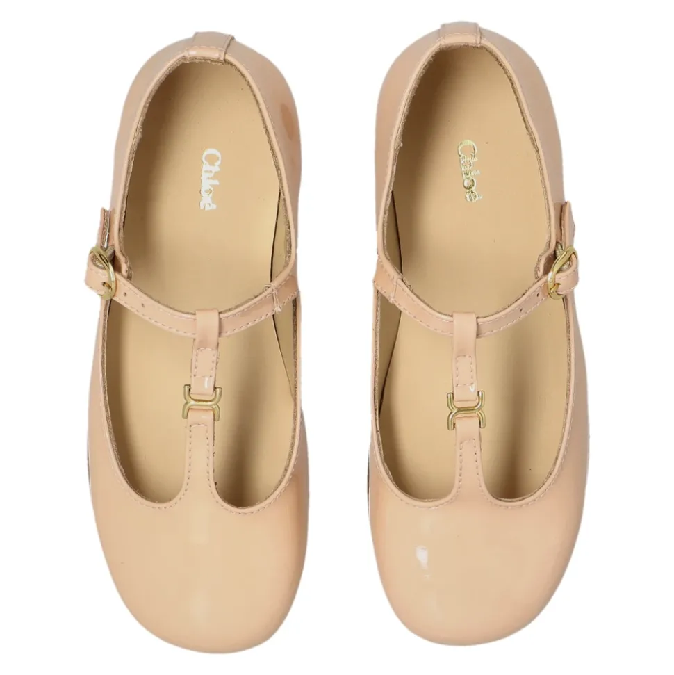 De Chloé leren ballerina met lak is een verfijnde, minimalistische ballerina met een T-bandje en een gouden gesp voor een elegante look. De lakleren afwerking en het logo in reliëf voegen een subtiele designertoets toe. Belangrijkste kenmerken: Beige | Leer | Comfortabele constructie | leren zool | Gespsluiting | Enkele band (T-band) sluiting | Ronde neus | Laag model | T-bandje | Lakafwerking | Logo in reliëf op de hiel en binnenzool | Goudkleurige gesp | Samenstelling & verzorging: Leer (buitenkant, binnenkant en zool) | Goudkleurig metaal (gesp) | Lakafwerking
