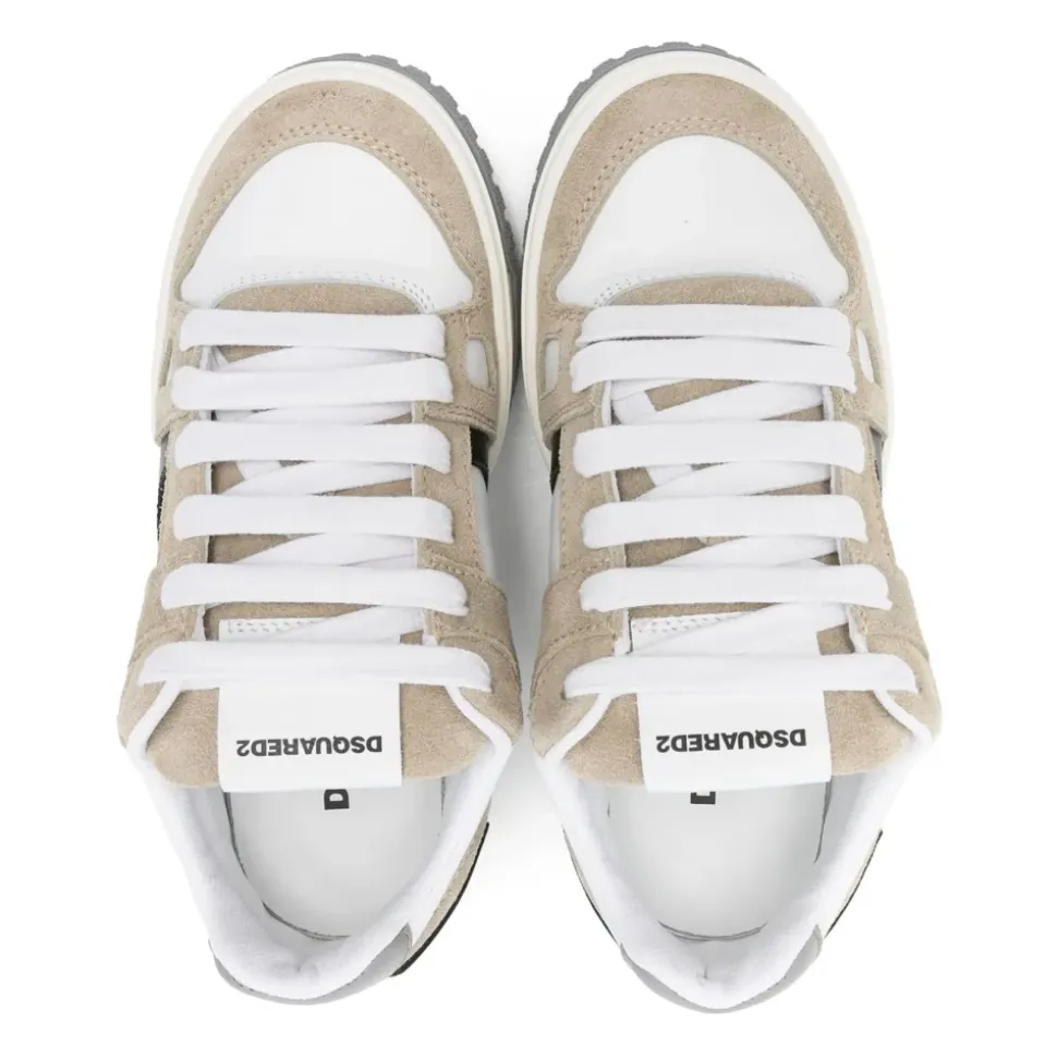 Dsquared2 leren en suède sneakers combineren kalfsleer en suède voor een evenwichtige mix van comfort en eigentijdse stijl. Vervaardigd in Italië, bieden ze een perfecte pasvorm tot en met EU 40. Belangrijkste kenmerken: Wit | Bianco | Kalfsleer en suède | Comfortgerichte constructie | Modieus ontwerp | Bovenwerk van panelen van leer en suède | Onderscheidende Dsquared2-esthetiek | Afmetingen en pasvorm: Valt normaal tot en met EU 40 | Samenstelling en onderhoud: 100% KALFS | 100% PL | 100% TR | Volg de wasvoorschriften op het etiket. Niet chemisch reinigen. Niet in de droogtrommel. Niet bleken. Gebruik een wasmiddel voor gekleurde stoffen zonder bleekmiddelen. Strijk op maximaal 110°C en vermijd stoom.