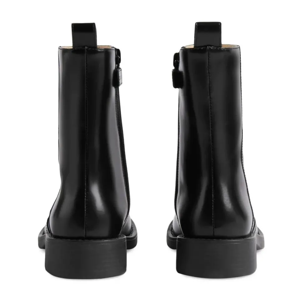 Ontdek de Gucci Leren Kinderlaarzen, vervaardigd uit premium leer voor duurzaamheid en stijl, perfect voor elke gelegenheid. Belangrijkste kenmerken: Zwart | Kalfsleer | Horsebit detail | Ronde neus | Samenstelling en onderhoud: 100% Kalfsleer | 100% Rubber