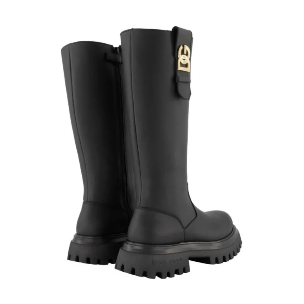 Dolce & Gabbana Leren Laarzen combineren een matte bovenkant van kalfsleer met een voering van shearling en een brede zool met profiel voor warme, gripvaste slijtage bij kouder weer. Belangrijkste kenmerken: Zwart | Leer | Warmte door shearling voering | rubberen buitenzool | Shearling voering voor isolatie | Rubberen zool met profiel voor grip | Matte bovenkant van kalfsleer | Brede zool met profiel | Shearling-gevoerde binnenkant | Afmetingen & pasvorm: Maat 32 — Schachthoogte: 28,5 cm; Schachtomtrek: 29 cm; Zooldikte: 3 cm; Hakhoogte: 4,5 cm; Teenbreedte (binnenzool): 7,5 cm; Binnenzoollengte: 21 cm. | Maat 37 — Schachthoogte: 33 cm; Schachtomtrek: 32,5 cm; Zooldikte: 3,5 cm; Hakhoogte: 4,5 cm; Teenbreedte (binnenzool): 8,5 cm; Binnenzoollengte: 25,3 cm. | Samenstelling & verzorging: Leer: 100% | Zool (rubber): 100% | Voering (shearling/ovchina): 100%