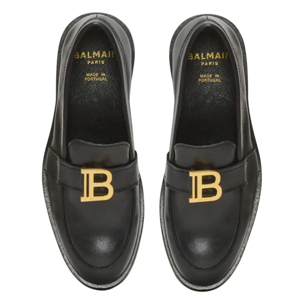 Leren loafers met B-logo Ronde neus Tong met gouden metalen B-logo Rubberen zool Leren voering Leren binnenzool Hoofdmateriaal: 100% leer Gemaakt in Portugal Artikel: BW0P96Z2841